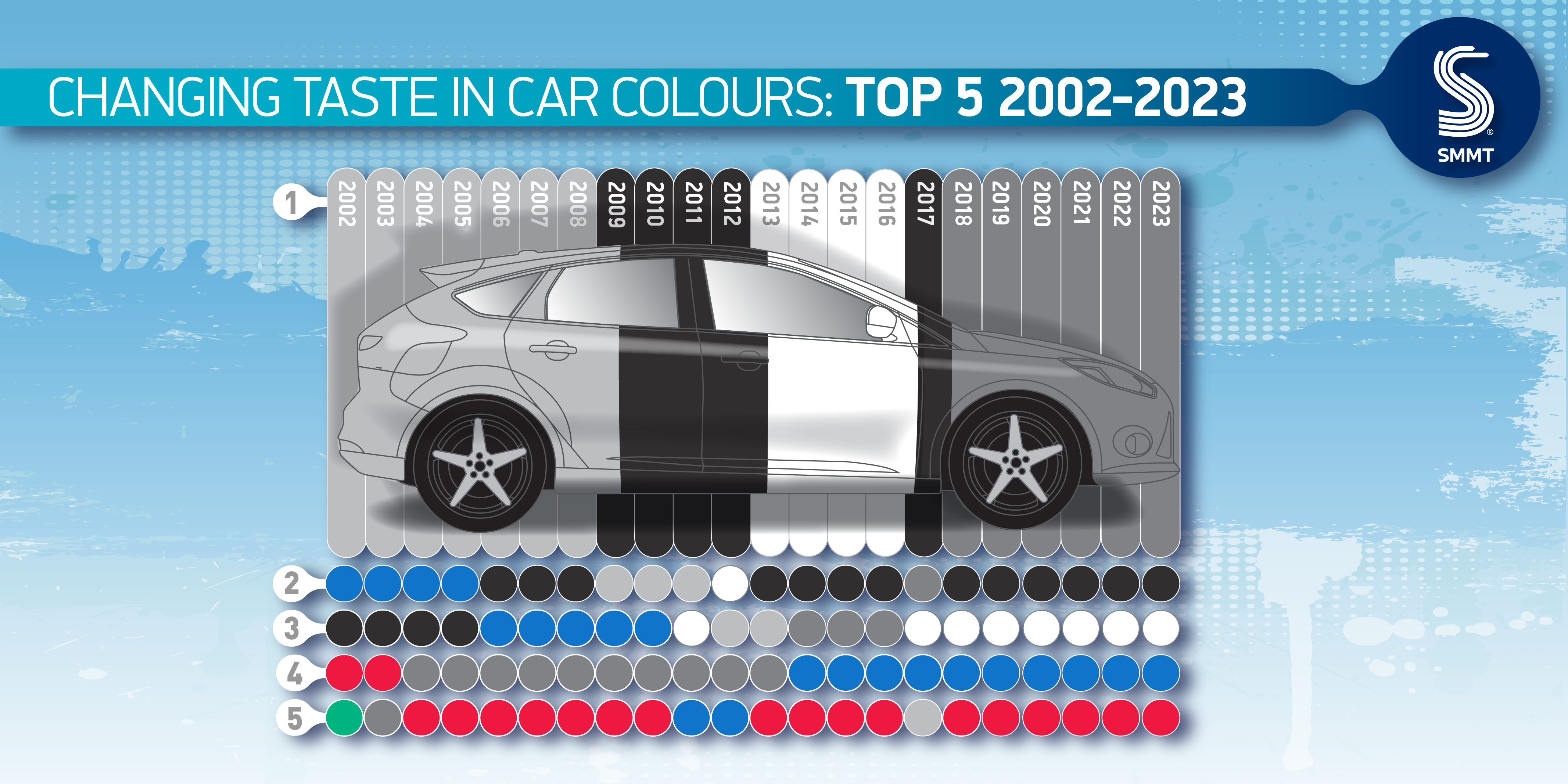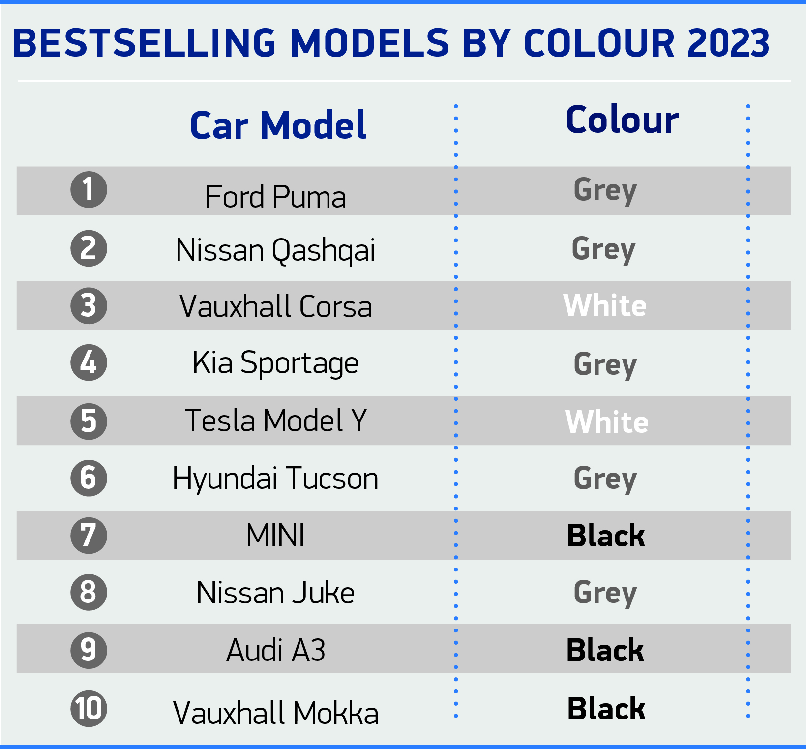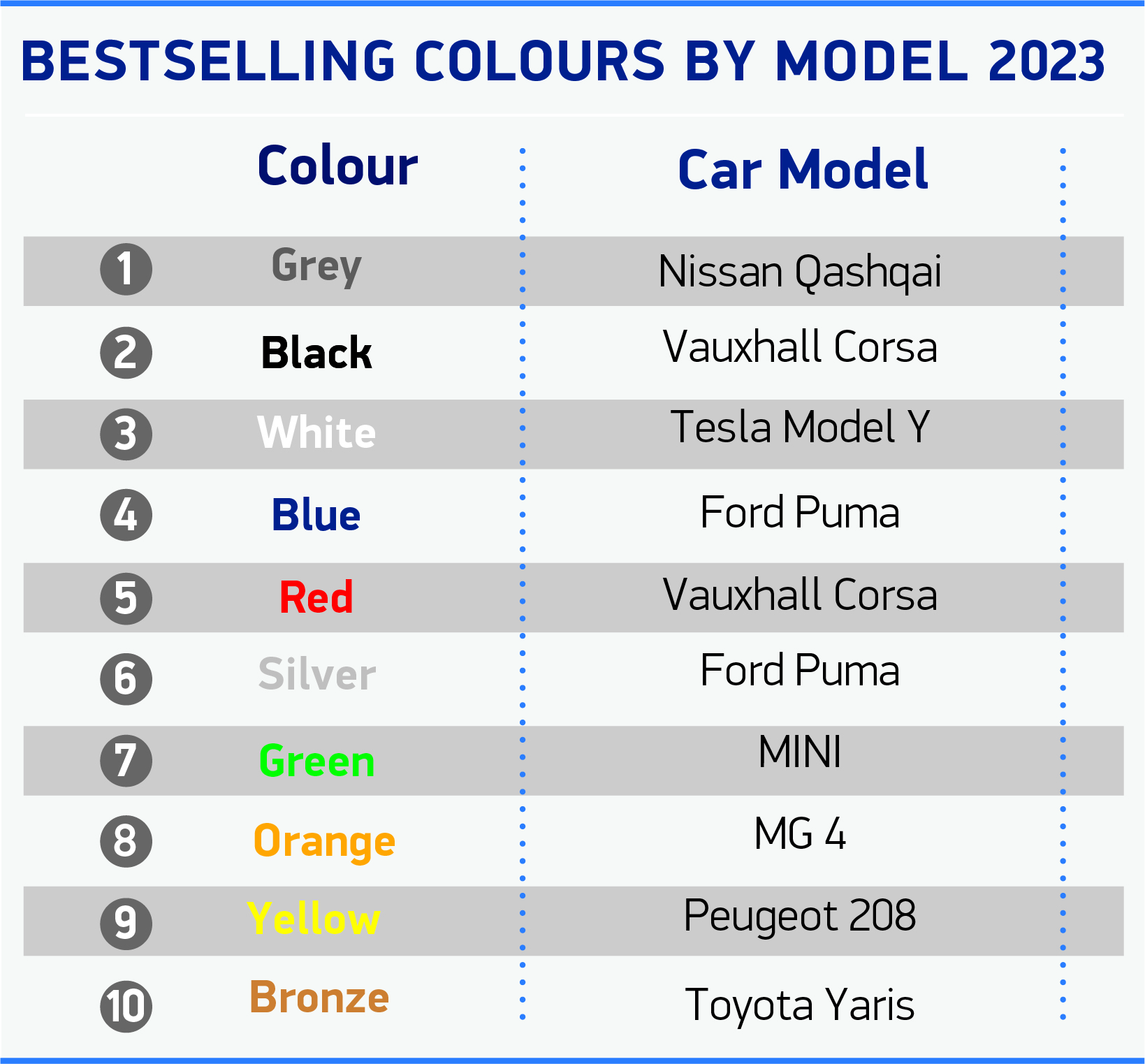 2023 was a bumper year for the British new car market, as buyers continued to gravitate towards familiar monochrome hues for another year – even as ever more motorists embrace new technologies. Car manufacturers have diligently expanded their offerings, with a huge selection of colour options available across hundreds of models and thousands of specification options. The extensive variety allows drivers flexibility in choosing a tint that embodies their individuality and style.